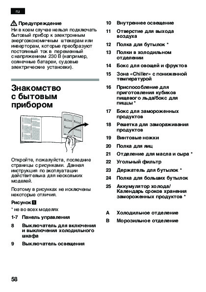 Если листать руководство пользователя холодильника Bosch KGN 56A72NE прямо на сайте, не очень удобно для Вас, есть два возможных решения:
