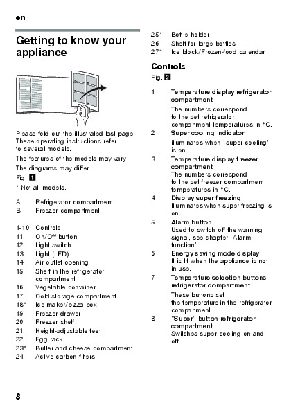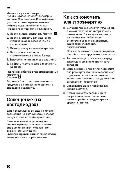 Если листать руководство пользователя холодильника Bosch KGN 56AW25N прямо на сайте, не очень удобно для Вас, есть два возможных решения: