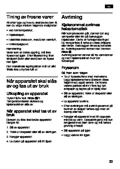 Многие люди предпочитают читать документы не на экране, а в печатной версии. Возможность печати руководства пользователя также была предусмотрена на нашем сайте, и вы можете использовать ее, нажав на иконку «печать» в Pdf-viewer. Нет необходимости печатать все руководство холодильника Bosch KGS 39A10, можно выбрать только нужные страницы инструкции.