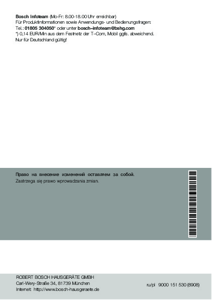 С помощью онлайн просмотра, Вы можете быстро просмотреть содержимое инструкции и найти решение проблемы с холодильника Bosch KIV 34X20.