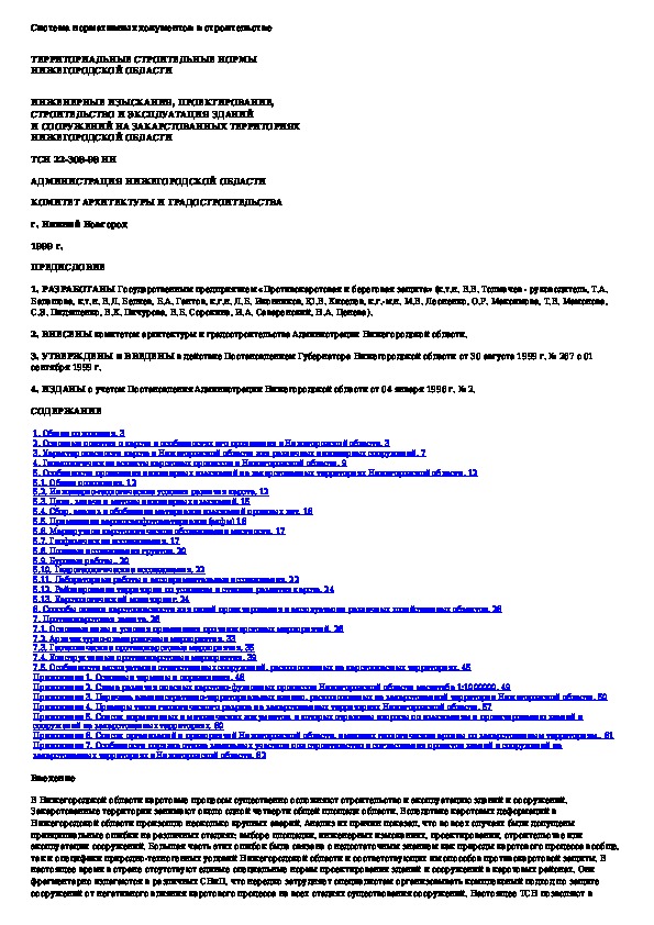 ТСН 22-308-98: Инженерные изыскания, проектирование, строительство и эксплуатация зданий и сооружений на закарстованных территориях Нижегородс