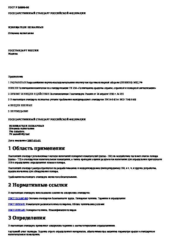 ГОСТ Р 50898-96: Извещатели пожарные. Огневые испытания