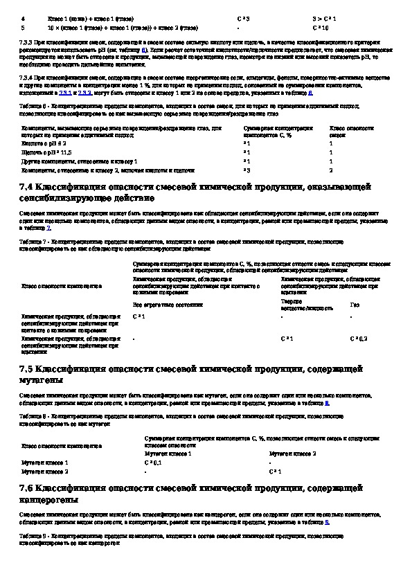 Классификация опасности смесевой химической продукции по воздействию на организм