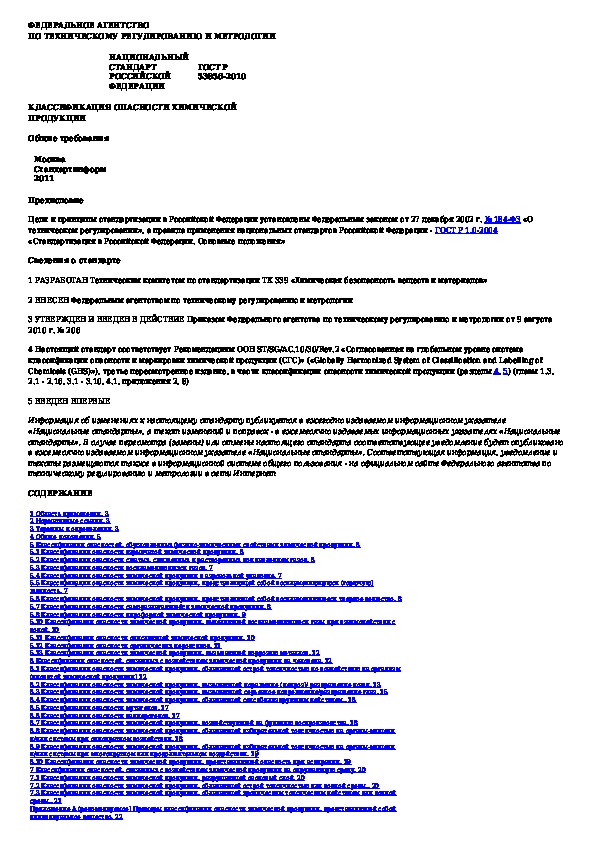 Наша цель состоит в том, чтобы предоставить вам быстрый доступ к содержанию документа Классификация опасности химической продукции. Общие требования.