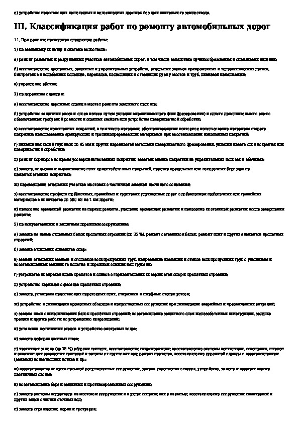 Классификация работ по капитальному ремонту, ремонту и содержанию автомобильных дорог общего пользования и искусственных сооруж