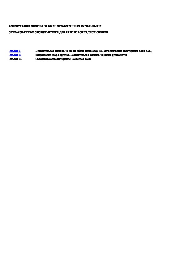 Наша цель состоит в том, чтобы предоставить вам быстрый доступ к содержанию документа Конструкции опор ВЛ 35 кВ из отработанных бурильных и отбракованных обсадных труб для районов Западной Сибири.