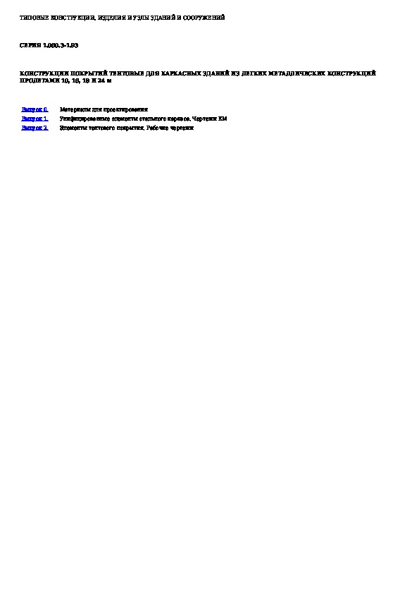 Наша цель состоит в том, чтобы предоставить вам быстрый доступ к содержанию документа Конструкции покрытий тентовые для каркасных зданий из легких металлических конструкций пролетами 10, 16, 18 и 24 м.