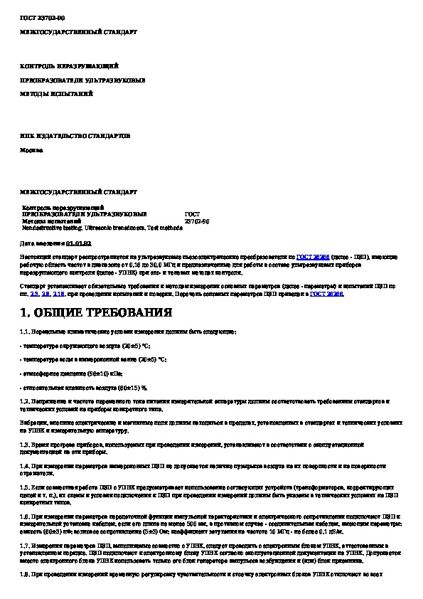 ГОСТ 23702-90: Контроль неразрушающий. Преобразователи ультразвуковые. Методы испытаний