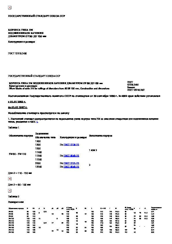 • Просмотр в полноэкранном режиме - легко просмотреть документ Корпуса типа УМ подшипников качения диаметром от 80 до 150 мм. Конструкция и размеры (без загрузки его на свой компьютер).