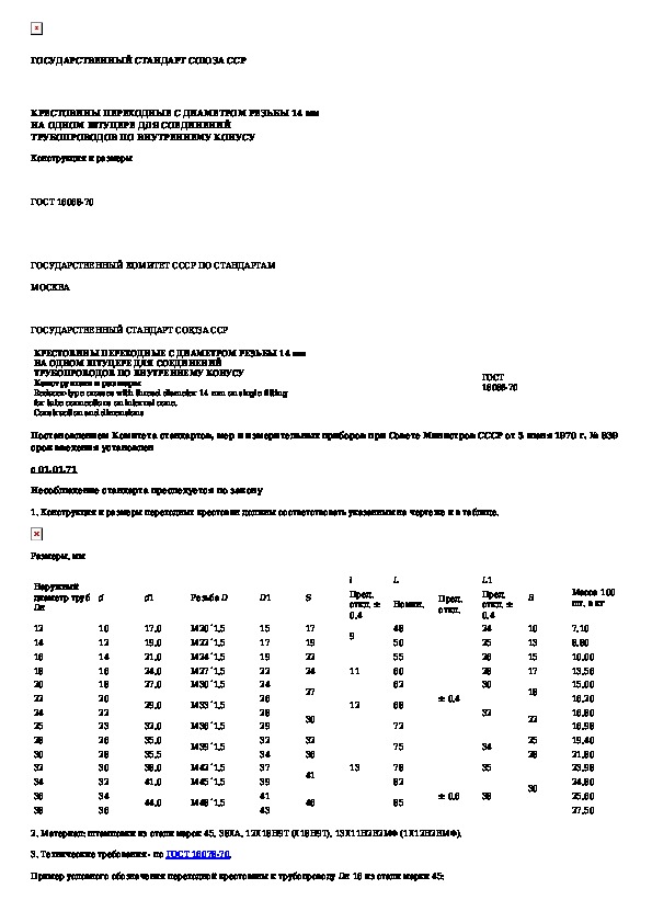 Наша цель состоит в том, чтобы предоставить вам быстрый доступ к содержанию документа Крестовины переходные с диаметром резьбы 14 мм на одном штуцере для соединений трубопроводов по внутреннему конусу. Конструкция и .