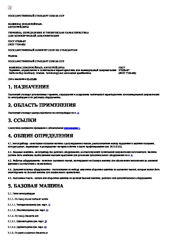 ГОСТ 27535-87: Машины землеройные. Автогрейдеры. Термины, определения и техническая характеристика для коммерческой документации