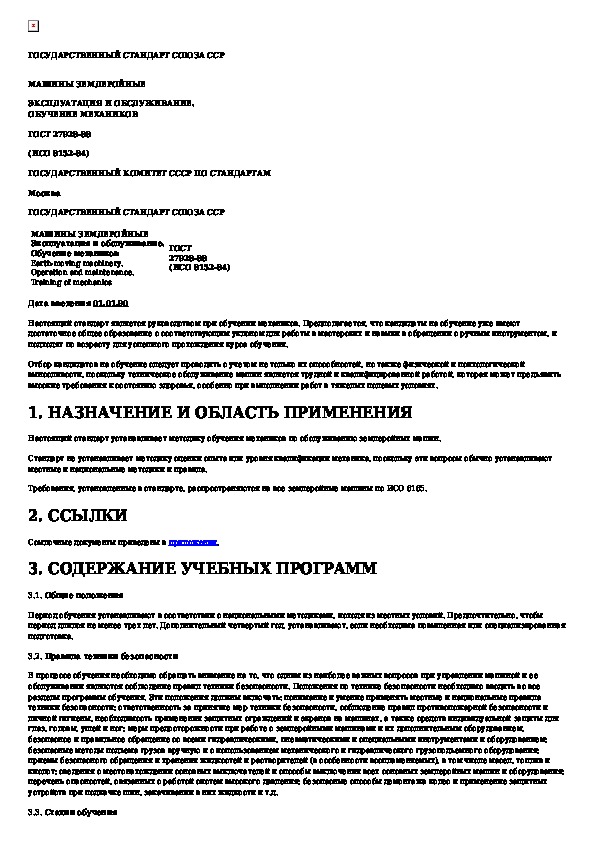 ГОСТ 27928-88: Машины землеройные. Эксплуатация и обслуживание. Обучение механиков