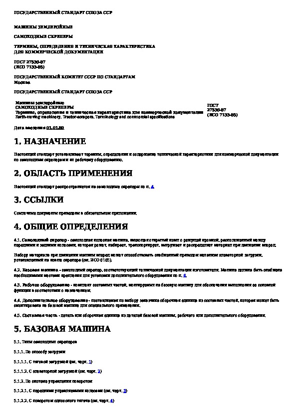 Наша цель состоит в том, чтобы предоставить вам быстрый доступ к содержанию документа Машины землеройные. Самоходные скреперы. Термины, определения и техническая характеристика для коммерческой документации.