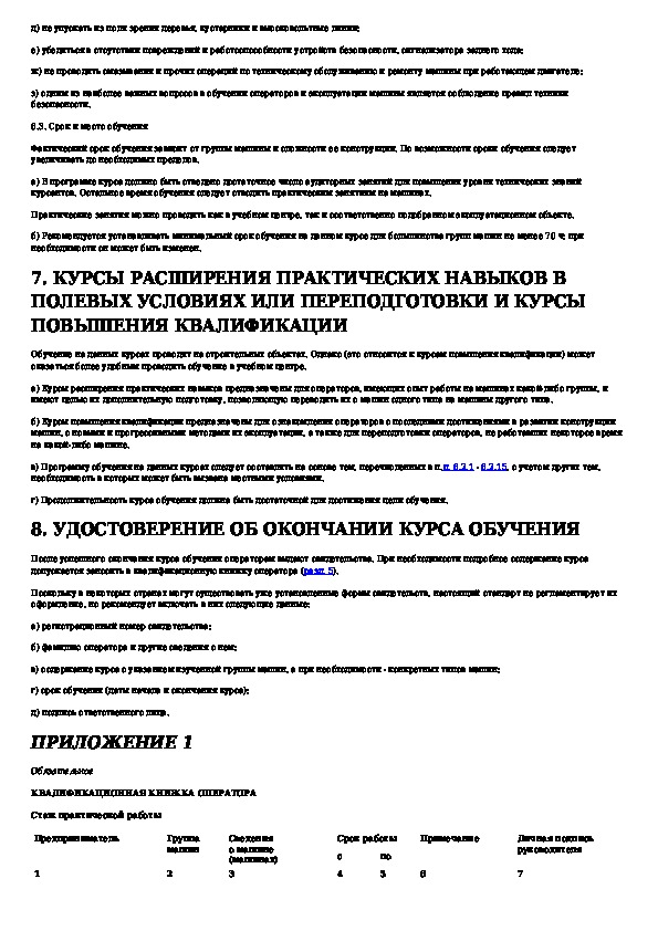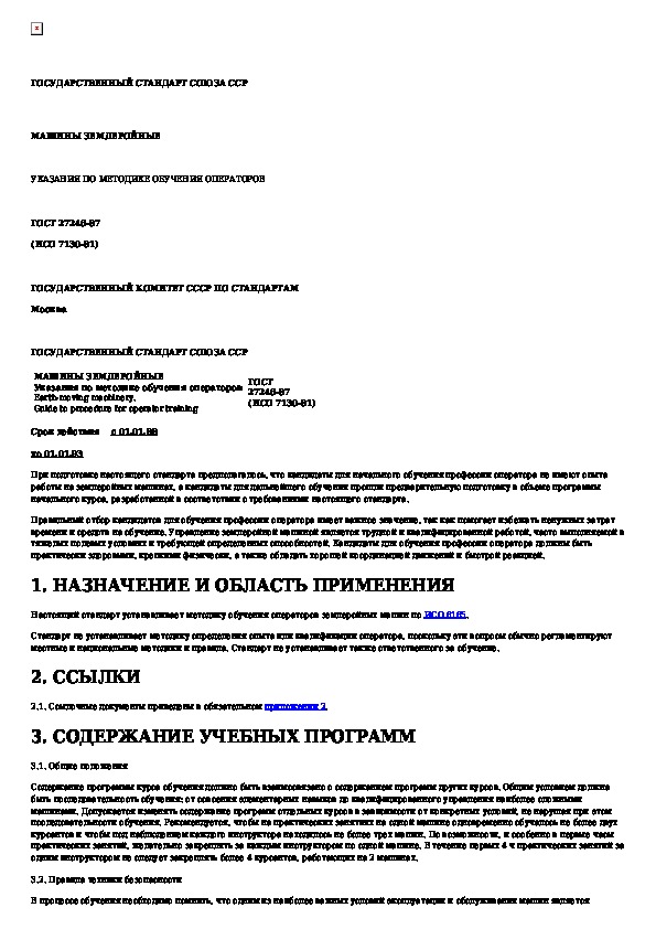 Машины землеройные. Указания по методике обучения операторов