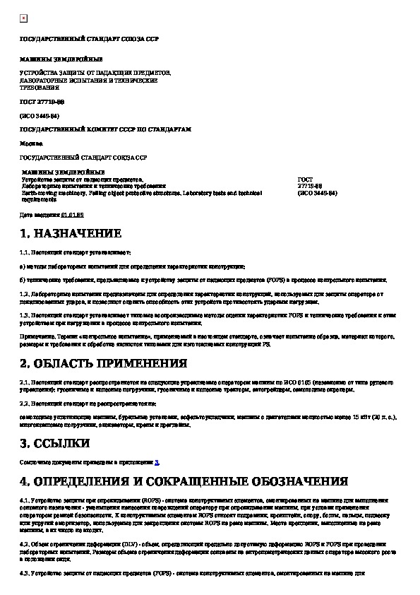 Наша цель состоит в том, чтобы предоставить вам быстрый доступ к содержанию документа Машины землеройные. Устройства защиты от падающих предметов. Лабораторные испытания и технические требования.