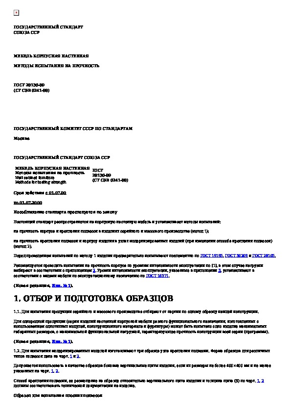 ГОСТ 28136-89: Мебель корпусная настенная. Методы испытания на прочность