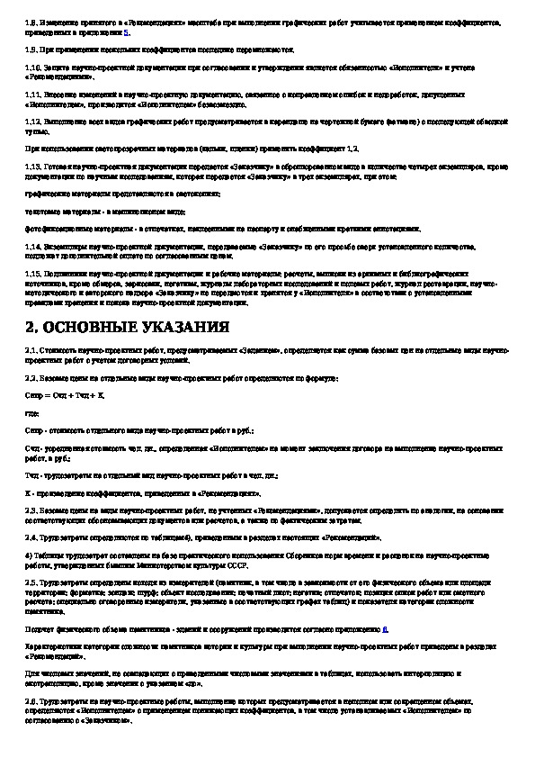 Методические рекомендации по определению стоимости научно-проектных работ для реставрации недвижимых памятников истории и культ