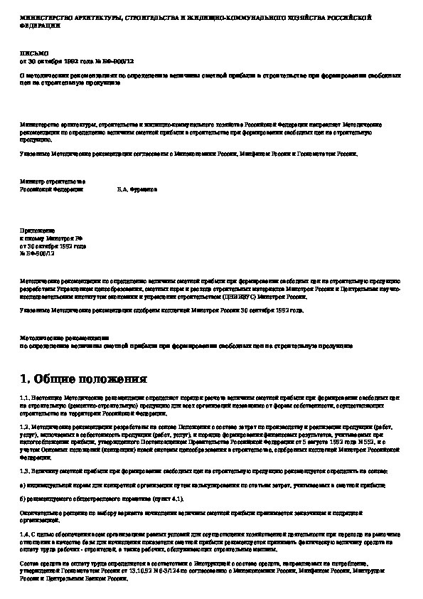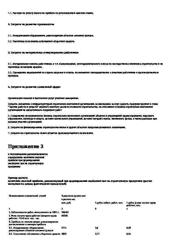 Методические рекомендации по определению величины сметной прибыли при формировании свободных цен на строительную продукцию