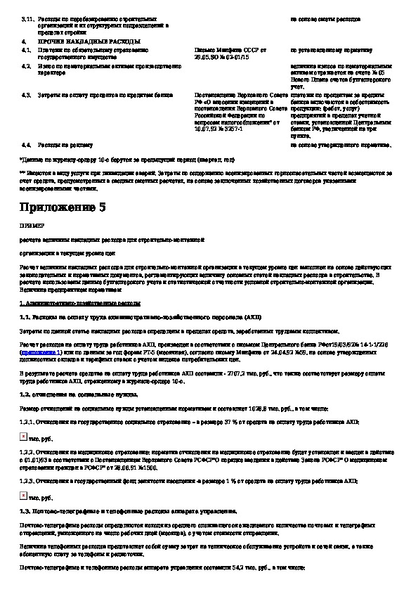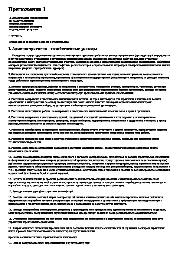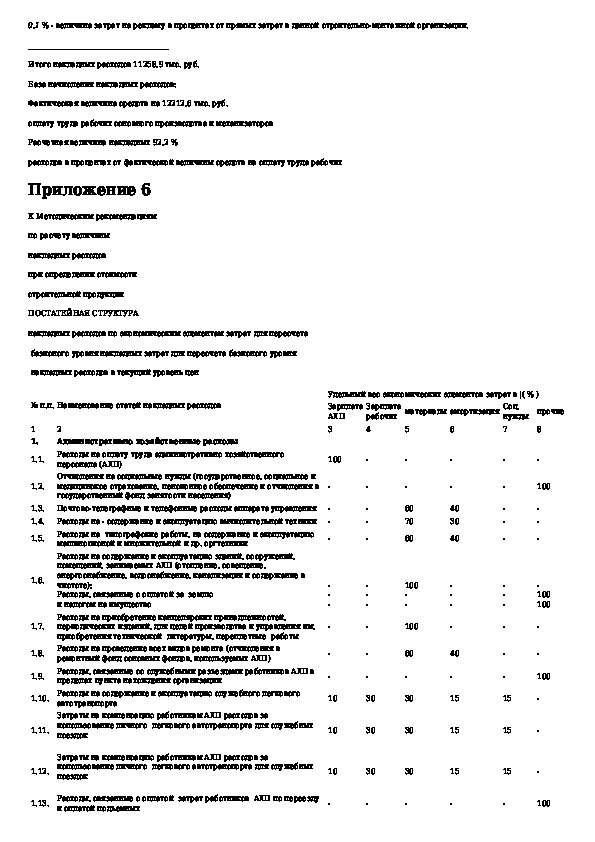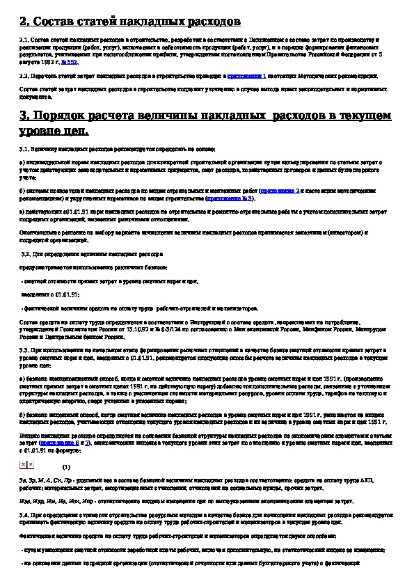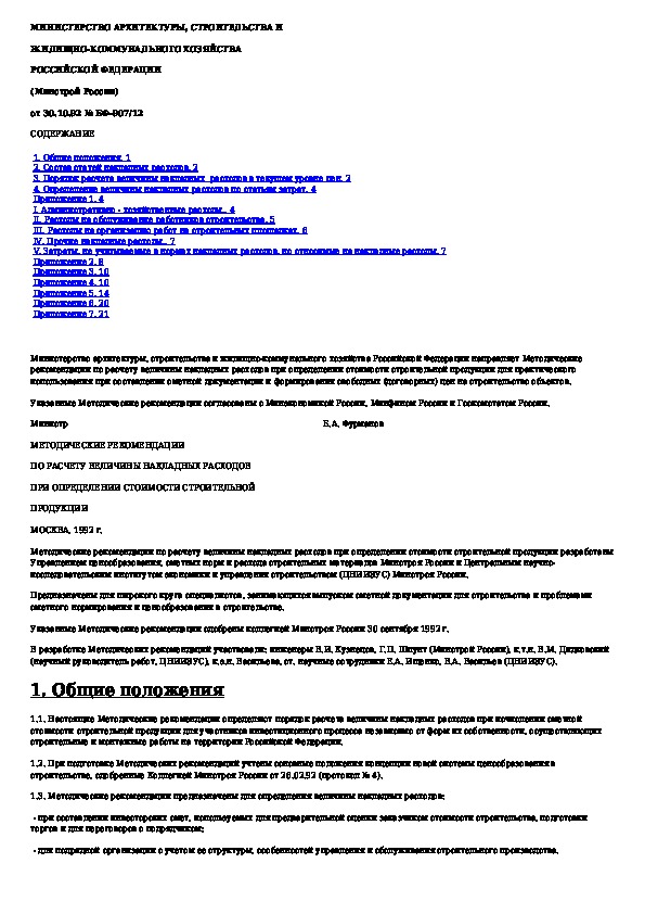 Методические рекомендации по расчету величины накладных расходов при определении стоимости строительной продукции