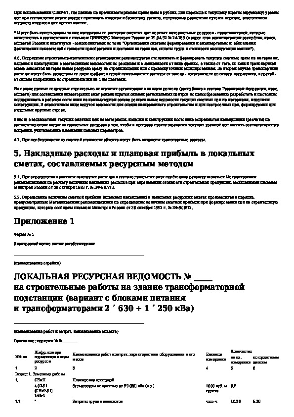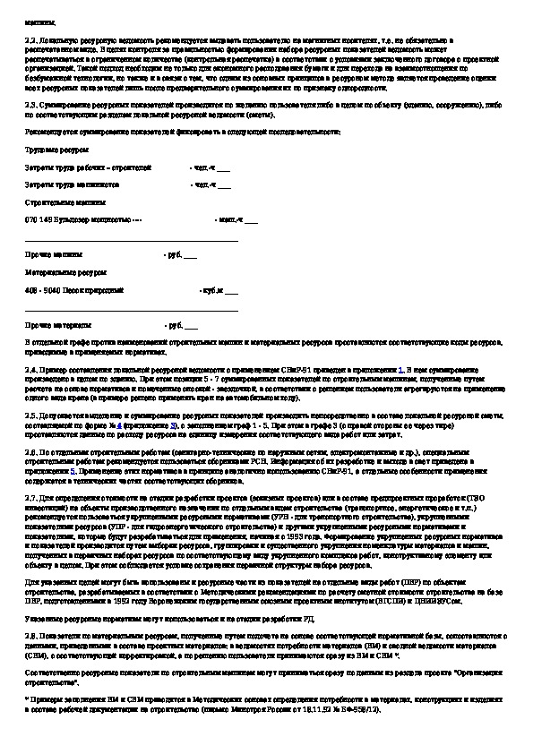 Методические рекомендации по составлению сметных расчетов (смет) на строительные и монтажные работы ресурсным методом