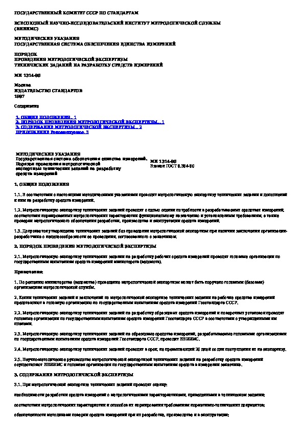МИ 1314-86: Методические указания. Государственная система обеспечения единства измерений. Порядок проведения метрологической экспертизы т