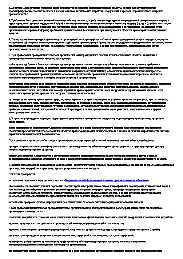 Методические указания о порядке проверки деятельности организаций, эксплуатирующих объекты транспортирования опасных веществ