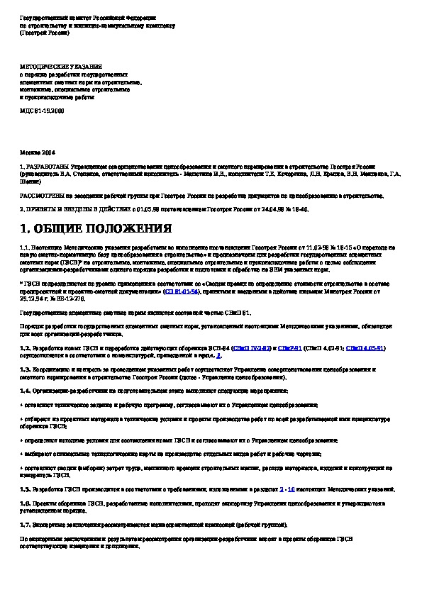 Методические указания о порядке разработки государственных элементных сметных норм на строительные, монтажные, специальные стро