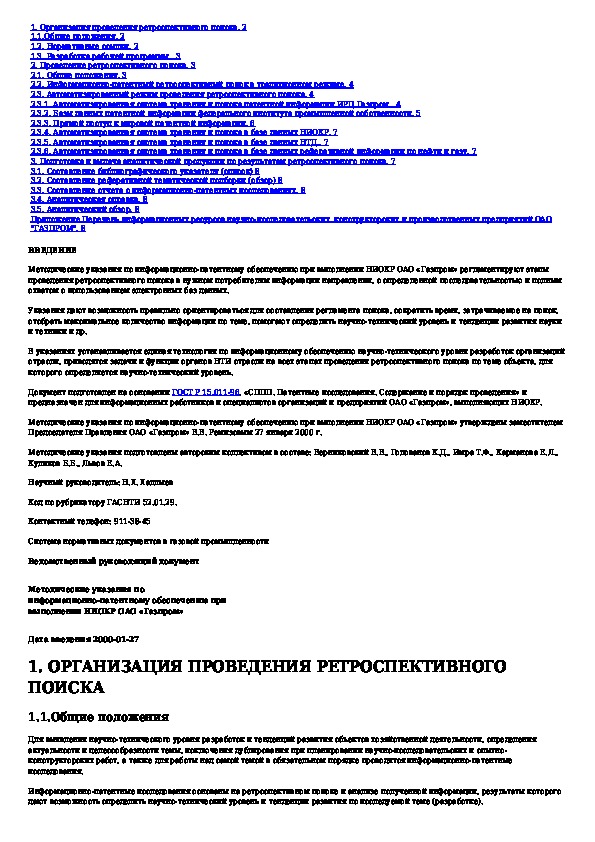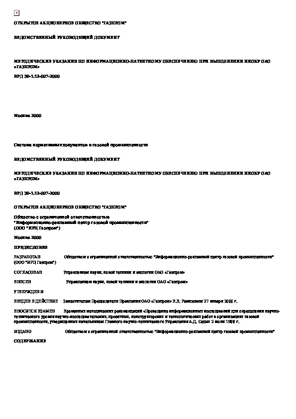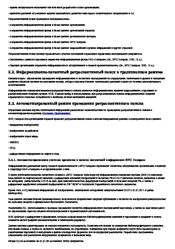 Методические указания по информационно-патентному обеспечению при выполнении НИОКР ОАО "Газпром"