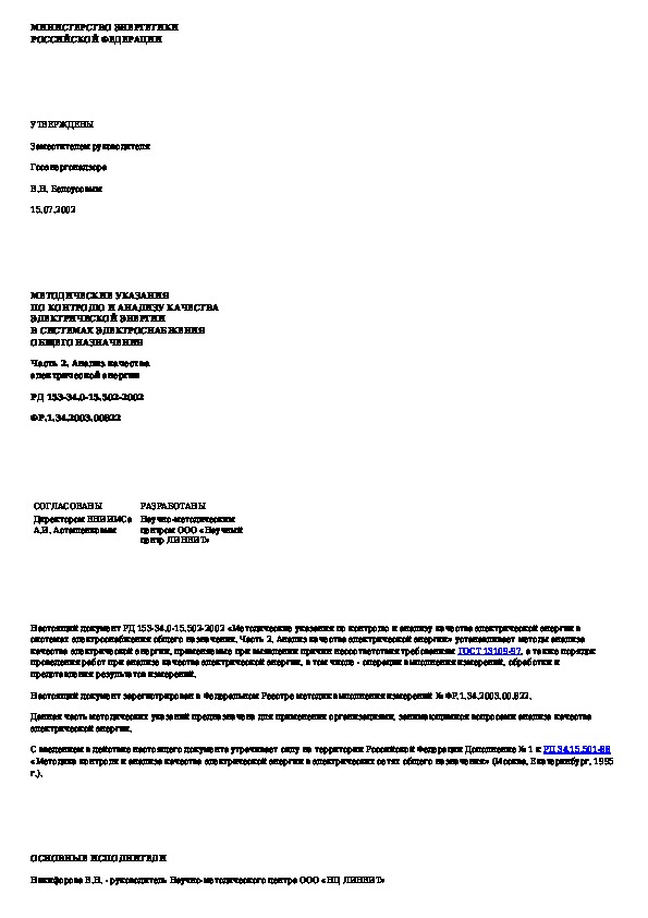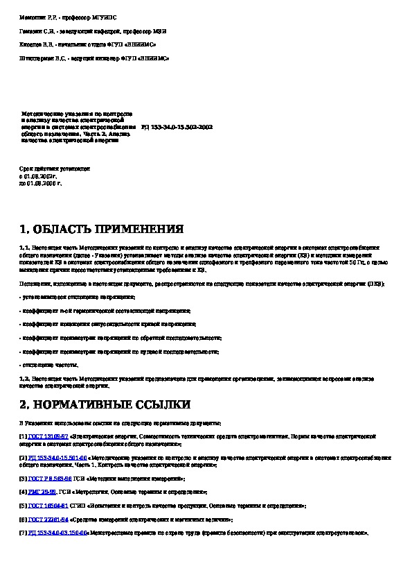 РД 153-34.0-15.502-2002: Методические указания по контролю и анализу качества электрической энергии в системах энергоснабжения общего назначения. Ч. 2. Ана