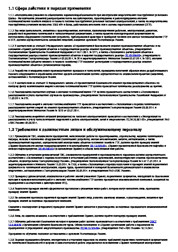 Методические указания по обеспечению взрывопожаробезопасности при эксплуатации энергетических газотурбинных установок