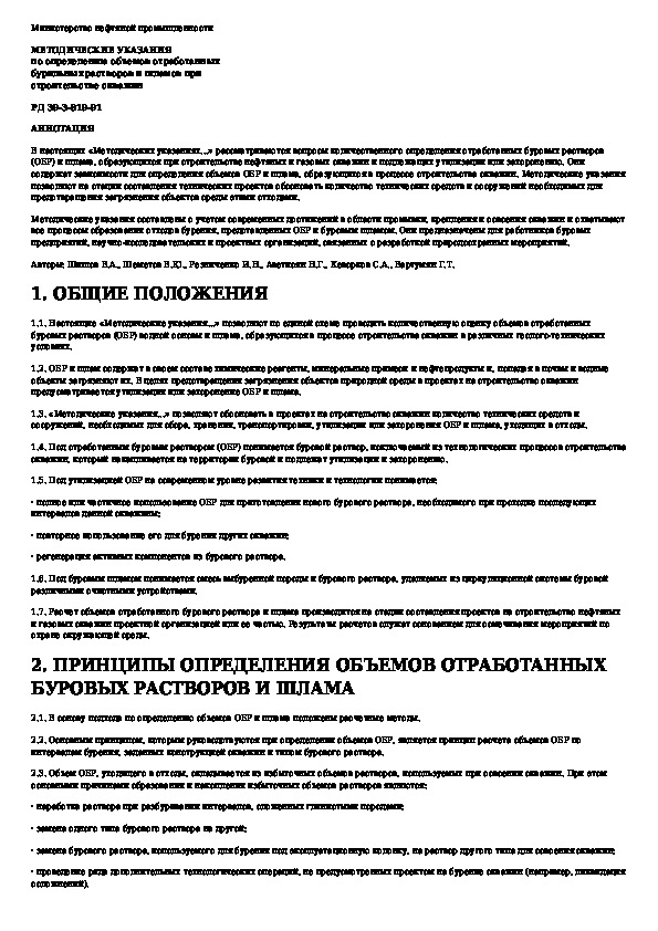 Наша цель состоит в том, чтобы предоставить вам быстрый доступ к содержанию документа Методические указания по определению объемов отработанных бурильных растворов и шламов при строительстве скважин.