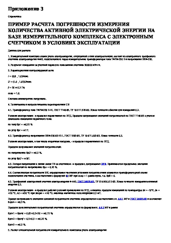 Методические указания по определению погрешности измерения активной электроэнергии при ее производстве и распределении