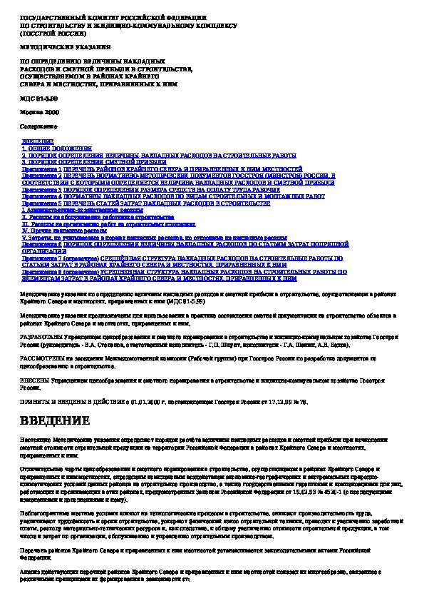 Наша цель состоит в том, чтобы предоставить вам быстрый доступ к содержанию документа Методические указания по определению величины накладных расходов и сметной прибыли в строительстве, осуществляемом в районах Кра.
