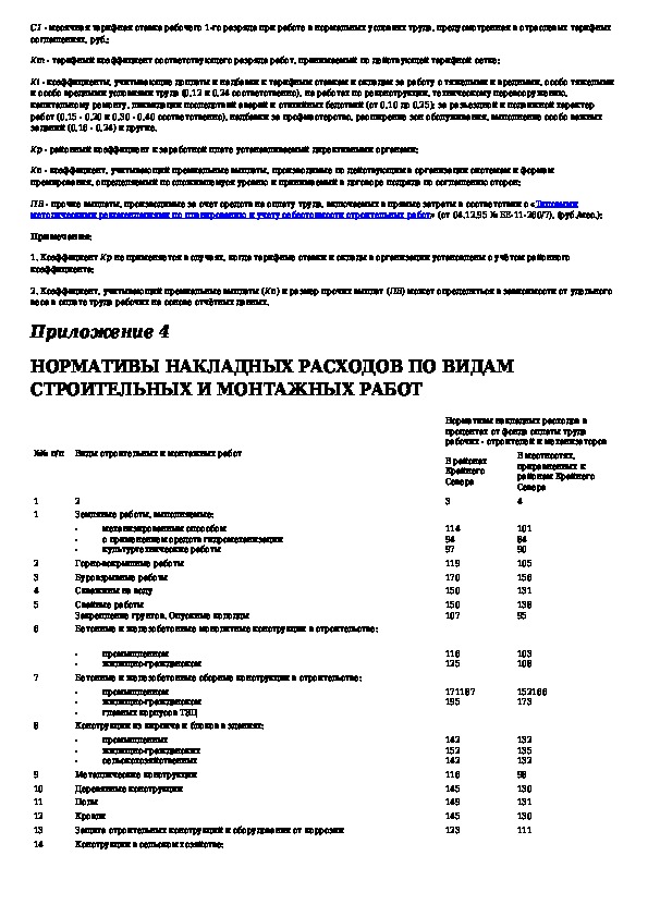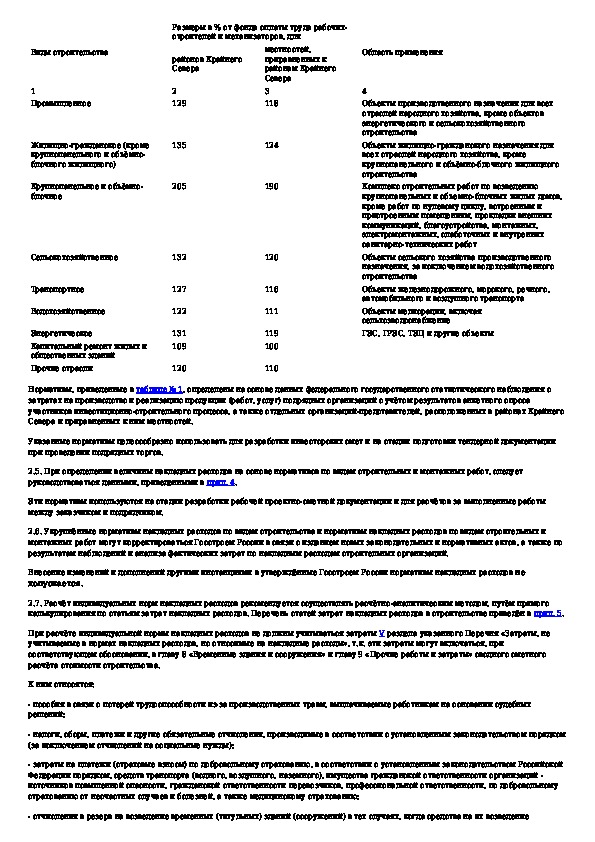 Методические указания по определению величины накладных расходов и сметной прибыли в строительстве, осуществляемом в районах Кра