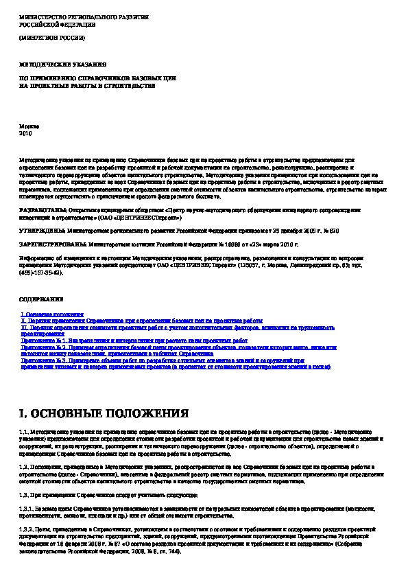 Методические указания по применению справочников базовых цен на проектные работы в строительстве