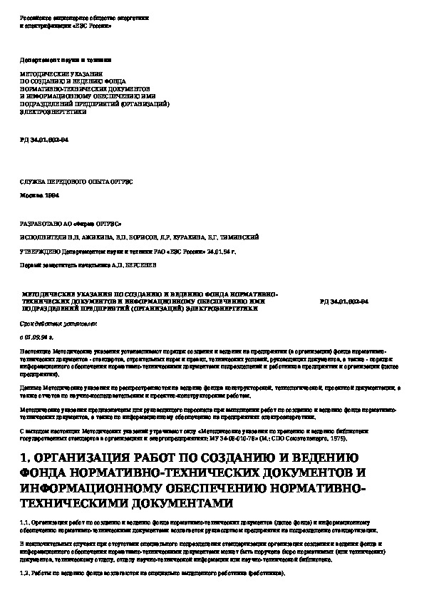 РД 34.01.602-94: Методические указания по созданию и ведению фонда нормативно-технических документов и информационному обеспечению ими подраздел
