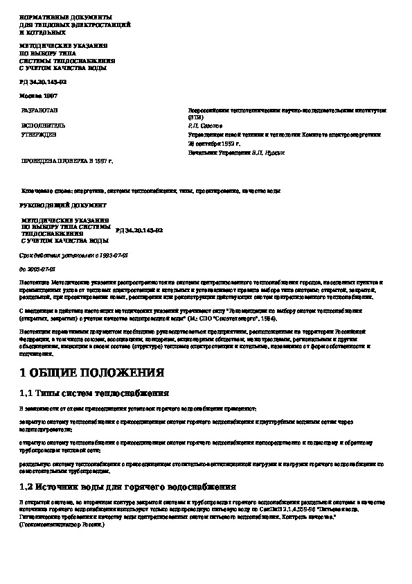 Наша цель состоит в том, чтобы предоставить вам быстрый доступ к содержанию документа Методические указания по выбору типа системы теплоснабжения с учетом качества воды.