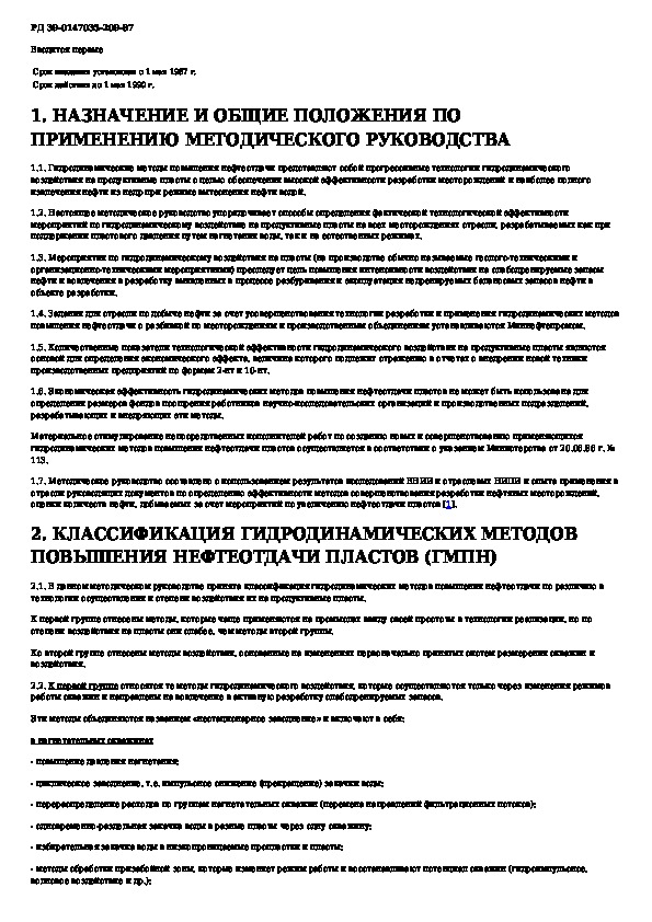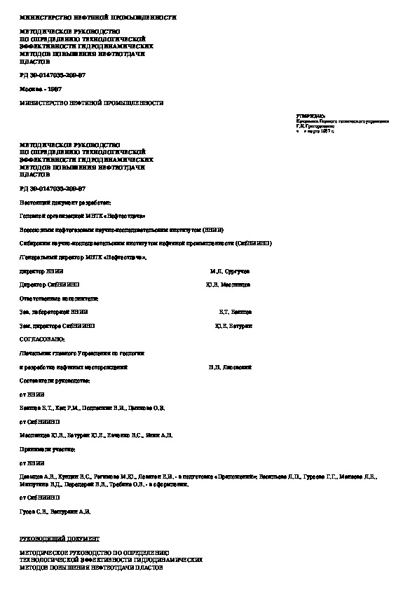 Методическое руководство по определению технологической эффективности гидродинамических методов повышения нефтеотдачи пластов