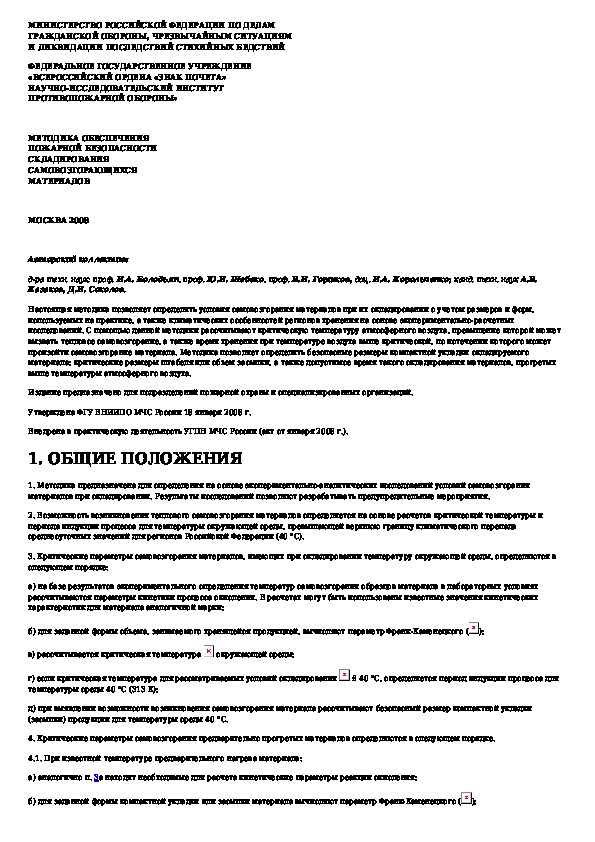 • Просмотр в полноэкранном режиме - легко просмотреть документ Методика обеспечения пожарной безопасности складирования самовозгорающихся материалов (без загрузки его на свой компьютер).