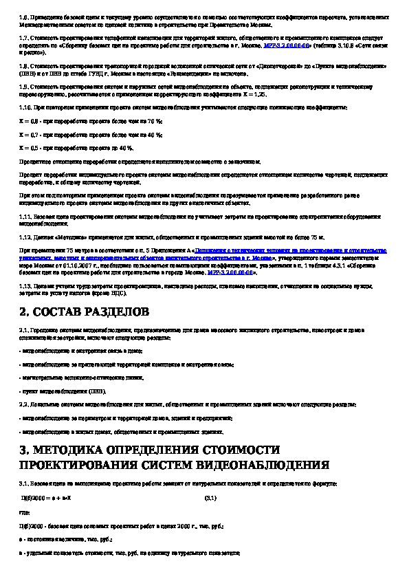 МРР 3.2.21.03-09: Методика определения стоимости разработки проектно-сметной документации для систем видеонаблюдения, осуществляемой с привлечен