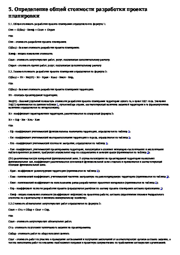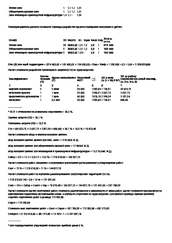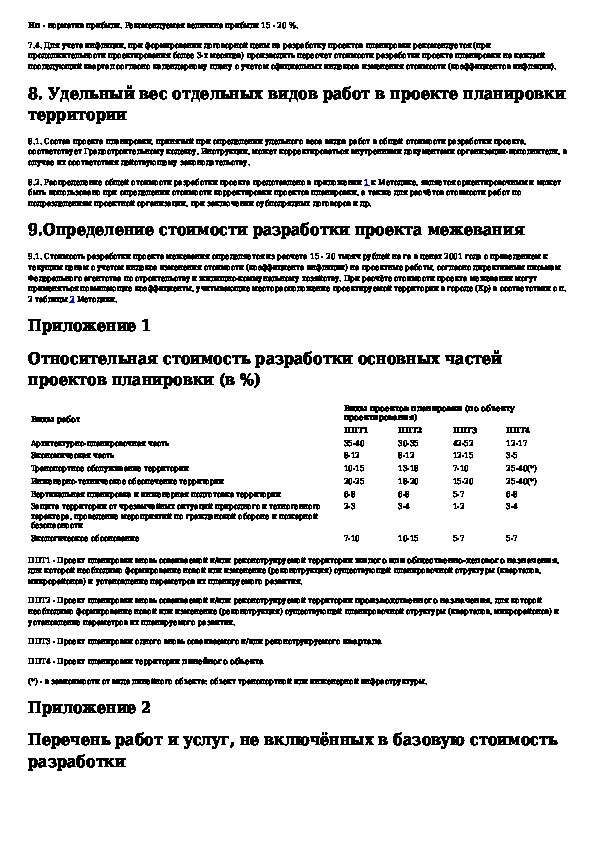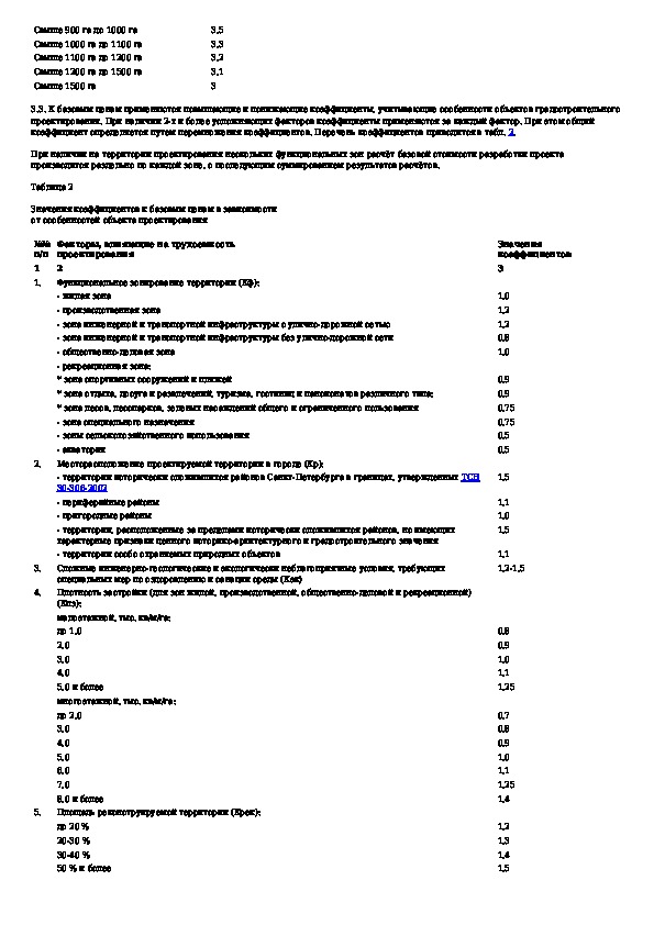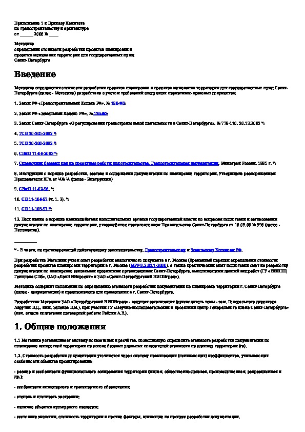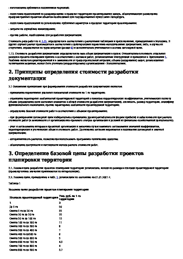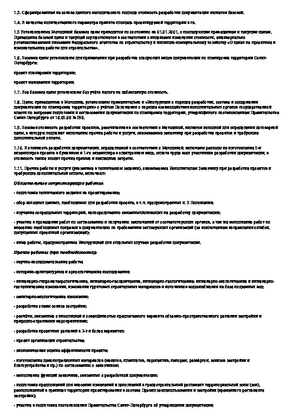 Методика определения стоимости разработки проектов планировки и проектов межевания территории для государственных нужд Санкт-Пе