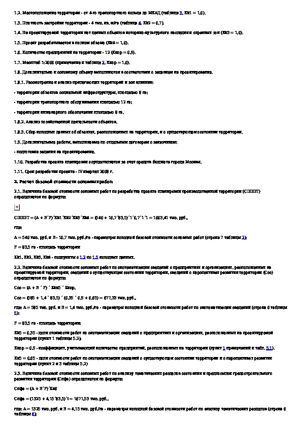 Методика определения стоимости разработки проектов планировки производственных территорий, осуществляемой с привлечением средс