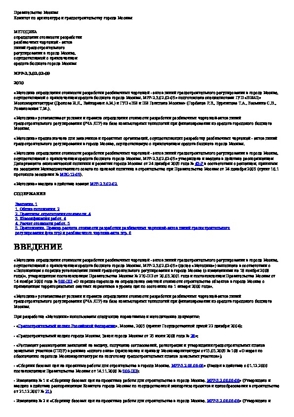 МРР 2.3.02.02-09: Методика определения стоимости разработки разбивочных чертежей - актов линий градостроительного регулирования в городе Москве, о