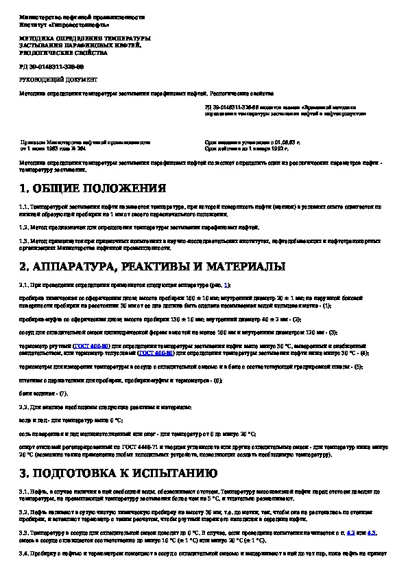 РД 39-0148311-328-88: Методика определения температуры застывания парафиновых нефтей. Реологические свойства