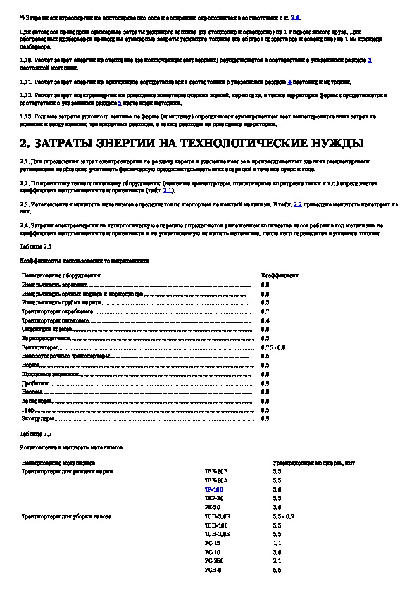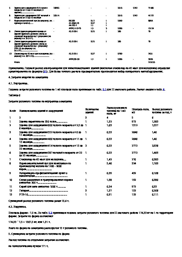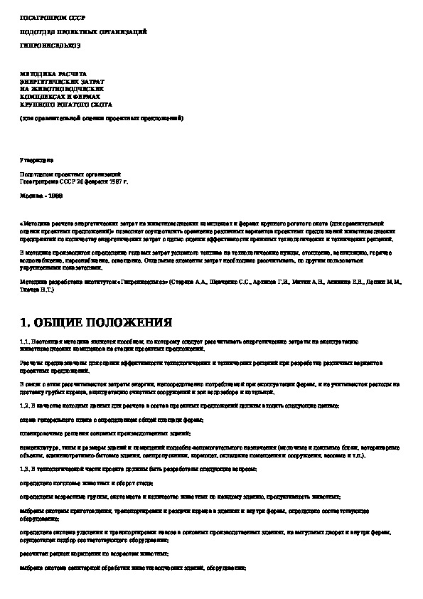Методика расчета энергетических затрат на животноводческих комплексах и фермах крупного рогатого скота (для сравнительной оценк
