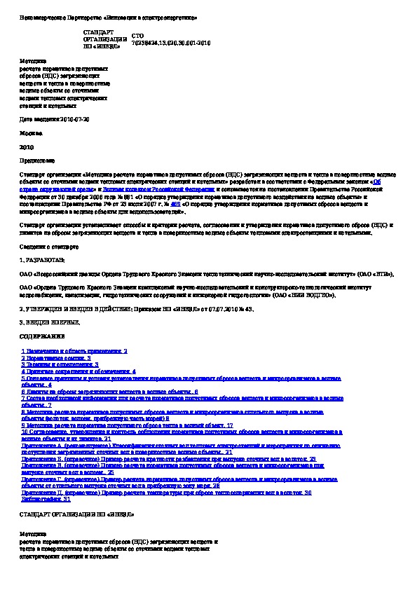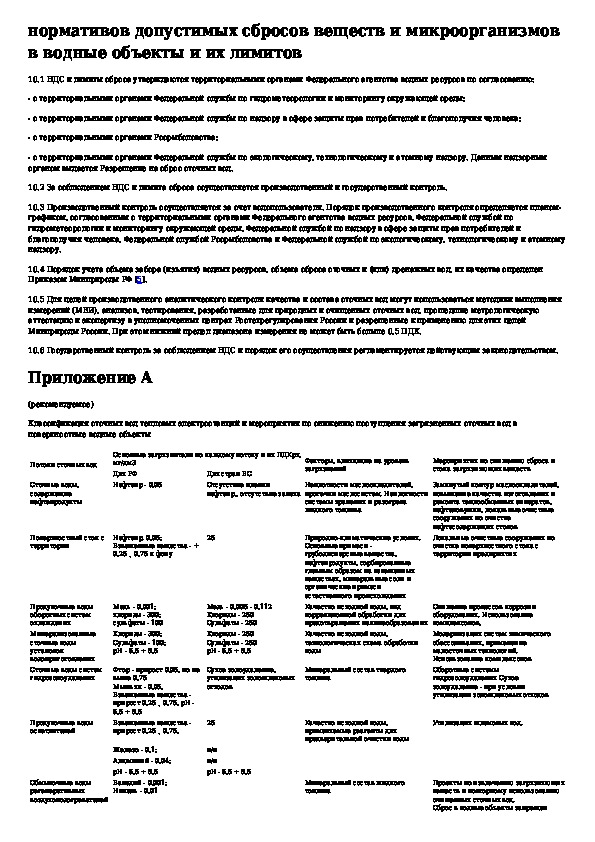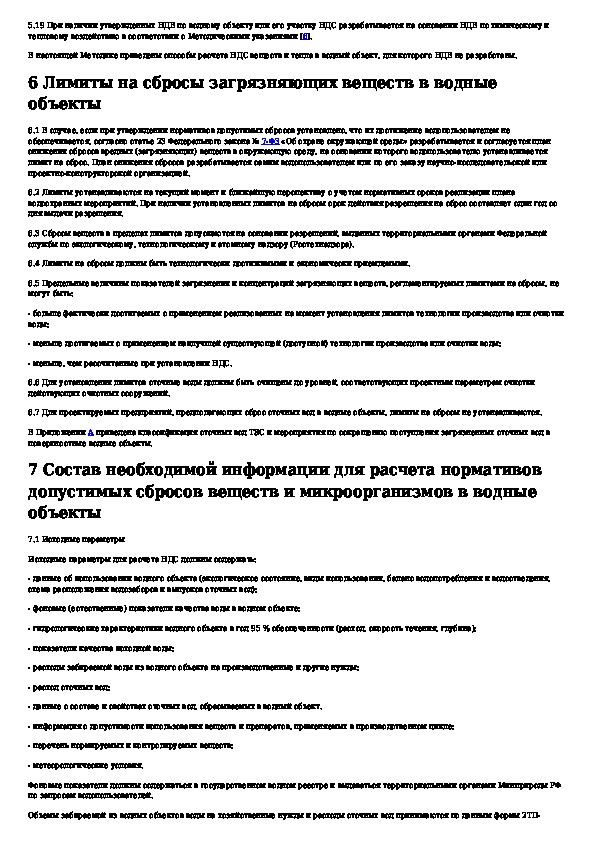 Наша цель состоит в том, чтобы предоставить вам быстрый доступ к содержанию документа Методика расчета нормативов допустимых сбросов (НДС) загрязняющих веществ и тепла в поверхностные водные объекты со сточными вода.