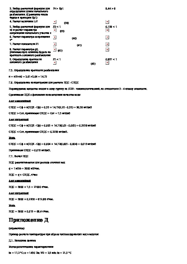 Методика расчета нормативов допустимых сбросов (НДС) загрязняющих веществ и тепла в поверхностные водные объекты со сточными вода