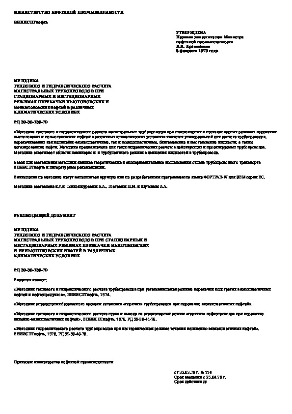 Наша цель состоит в том, чтобы предоставить вам быстрый доступ к содержанию документа Методика теплового и гидравлического расчета магистральных трубопроводов при стационарных и нестационарных режимах перекачки н.