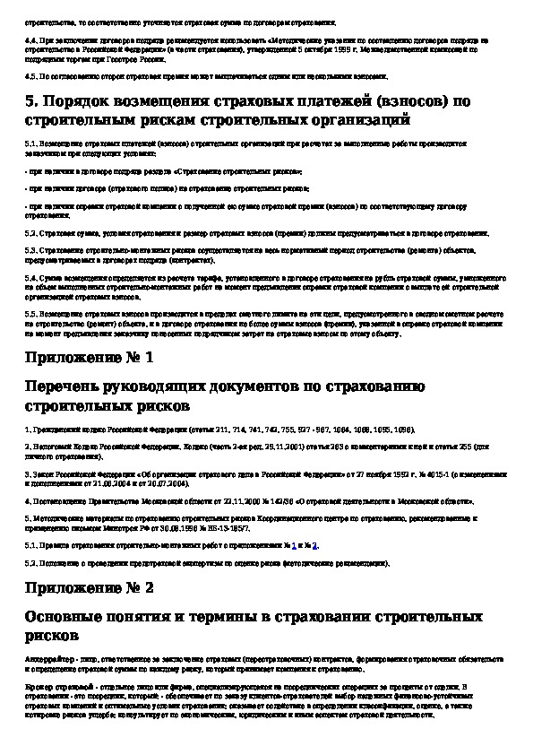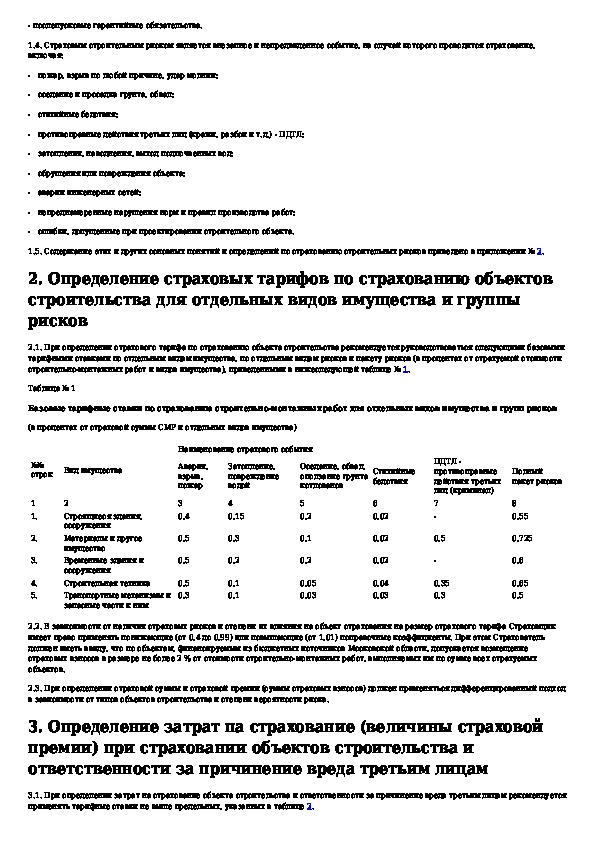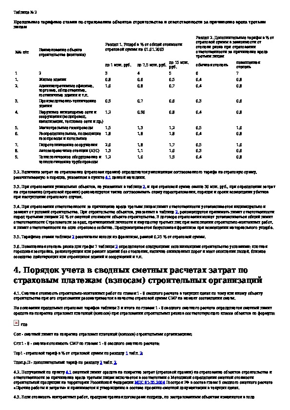 Методика учета в проектно-сметной документации на строительство затрат на страхование объектов строительства и ответственности
