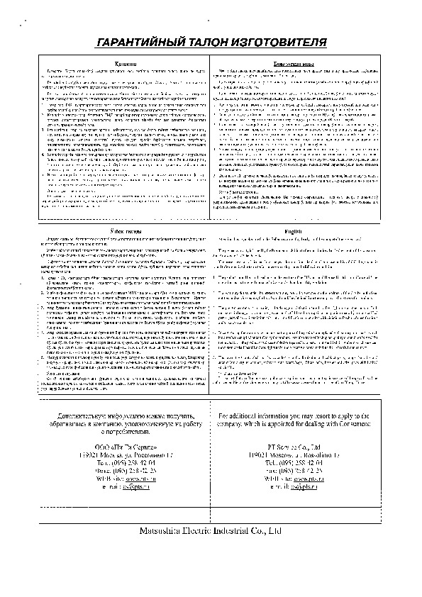 Инструкции по эксплуатации бытовой техники и электроники > Panasonic